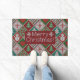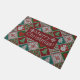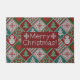 Uma porta de Natal feliz e incomum original. Espetáculos de natal vermelhos, verdes, brancos e teais com árvores de Natal, flocos de neve, corações, bonecos de neve e ornamento de fevron zigzag.