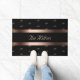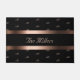 Elegante e simples. Um fundo preto com um quadro rosa dourado, listras. Personalize e adicione seu nome de família e monograma, iniciais. Seu nome familiar é inicial no meio com letra maiúscula.