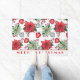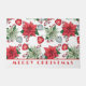 Há amoras ocas adoráveis, poinsetos vermelhos e verdes, e ornamentos em forma de coração com flocos de neve neles.