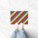Este trabalho de arte apresenta listras arco-íris num padrão colorido e divertido.