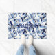 Este tapete temático de vôlei apresenta um padrão variado de marinho, volichões claros e brancos em profundidades variadas, que superam um sotaque detalhado - personalize com seu nome - a cor branca do fundo pode ser personalizada - por katz_d_zynes