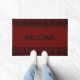 Elegante negro padrão grego no tapete de boas-vindas. O texto de boas-vindas pode ser personalizado.
