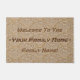 O design nesta porta interior cria a ilusão de azulejos de pedra cortadas à mão em tons de areia, castanho e amêndoa, dispostos em um padrão clássico em forma de ventilador (ou concha-clusa) frequentemente visto em passagens e passarelas de mansões de luxo. 3 campos de texto personalizados prontos para personalizar esse padrão para: "Bem-vindo ao", "(Nome da sua família)" e "Home da família!"