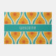 Meio século Moderno Quedas Atômicas Padrão Retroativo Turquesa Azul Amarelo Laranja. Vírus da era espacial divertida; estética vintage modernista dos anos 1960 do médio dos anos 1950. Tons de chá e mostarda. Viva e alegre. O texto "Bem-vindo" pode ser personalizado. Por Kierkegaard Design Studio.