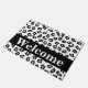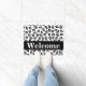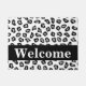 Bem-vindos visitantes à sua casa com este na moda e sofisticado tapete preto-e-branco da pele do leopardo. Este tapete de porta é personalizado com a palavra Bem-vindo que você pode mudar para outra palavra ou nome. Uma cinza de tendência (cinza) dá uma área para personalização. Aproveite esta design popular e contemporânea que irá adicionar um sotaque decorativo de casa de tendências. Esta design de leopardo está disponível em várias combinações de cores nesta loja.