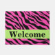 Bem-vindos visitantes à sua casa com este salpúsculo de cor de fúshia rosa forte e um tapete preto de pele de zebra. Este tapete de porta é personalizado com a palavra Bem-vindo que você pode mudar para outra palavra ou nome. Uma faixa de verde limão oferece uma área para personalização e cor adicional. Aproveite este design popular e contemporâneo que irá adicionar uma tendência e um sotaque decorativo colorido em casa. Este design está disponível em várias combinações de cores nesta loja ou pode ser personalizado para você.