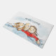 Esta porta tem uma ilustração de um filhote fofo e seus pais, um homem careca e uma mulher morena. Você pode personalizar o texto.
