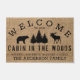 Bem-vindos aos seus convidados para a sua casa com esta casa rústica, country, de fazenda que contém as palavras "BEM-VINDO AO NOSSO PESCOÇO DAS MADEIRAS, MICHAEL, ELIZABETH, BRAYDEN & ALEXA A FAMÍLIA ANDERSON" em tipografia negra com pinheiros, um urso negro e alce em fundo falso. Personalize este tapete adicionando suas próprias informações pessoais da família. Um casamento perfeito, aniversário ou presente de inauguração. Clique em "personalizar este modelo" para alterar os nomes e qualquer outra palavra. Se precisar de ajuda para personalizar, envie-me um e-mail para o site @gmail.com. Obrigados para parar em www.zazzle.com/WhisperingPines. ©Karen Hall