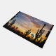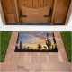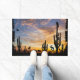 Paisagem do Deserto no Sudoeste de Kokopelli Rug Doormat. Animais no deserto do pôr do sol. Combinação de cores vívidas que você pode personalizar as cores de fundo para corresponder à decoração. Kokopelli - Todas as imagens são redimensionáveis para uma personalização ainda maior. Culturas indígenas nativas americanas. Atribuído a aliens antigos ou arte tribal e inspirado em desenhos de cavernas e rochas. Personalize as cores e estilos do tapete de porta nativo americano do Estilo Sudoeste. Excelente ideia de presente para aqueles que amam a natureza no sudoeste.