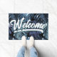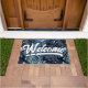 Outro tapete de porta na moda da JessicaAmber - pergunte sobre pedidos personalizados! Este tapete de borracha personalizável apresenta folhas monstera grandes em tons azuis mudos, sobre fundo preto. Você pode alterar a cor de fundo. Por cima está a palavra "Bem-vindo" - que também se pode mudar, juntamente com a palavra sublinhada - numa letra caligráfica descontraída. Faz um presente excelente para sua mãe ou esposa! 🌙 Para designs de folhagem mais modernos, visite minha loja: Zazzle.com/store/DriftwoodAndDreams 🌙 Para pedidos personalizados, envie-me uma mensagem no Zazzle