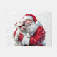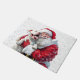 "A magia de Natal é a cauda do cão que abana e a risada do coração dos Papais noeis" e uma ilustração feliz do Pai Natal a abraçar o seu feliz cão branco-pitbull.