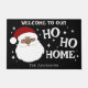 Design de Papai noel Festivo Africano-Americano - Traga alegria festiva à sua porta com esta moderna porta de Natal com Papais noeis afro-americanos divertidos e caprichosos! A mensagem alegre, "Bem-vindo ao nosso Ho, Ho, Casa," está escrita em uma fonte divertida, definindo um tom de feliz para os convidados de férias. Com seu ousado fundo negro, este tapete atinge um equilíbrio perfeito entre elegância moderna e alegria de férias. Os Papais noeis de na moda, vestidos com seu terno vermelho clássico e sorrindo intensamente, fazem deste tapete uma peça sobressalente para sua decoração de Natal. Personalize-o com o nome da sua família na parte inferior para um toque pessoal que acolhe convidados com calor e espírito de feriado.