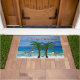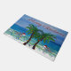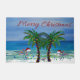 Sanduíches de papais noeis tocando na praia de água limpa com palmeiras de Natal, morando na orla de Natal. Árvore de palmeiras de Natal tropical dentro ou ao ar livre para pátio, interior, entrada ou qualquer lugar. Estes tapetes são feitos usando meus designs de arte originais.