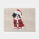 Festivo Personalizado Feriado Natal Bernese Mountain Dog vestindo Papais noeis de efeito rabisco de rabisco de rabisco e o Pai Natal segurando cana doce na boca. Bela porta de natal para amantes de berner!