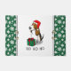 Feliz Natal Caça-Basset do Papai Noel - Cachorro engraçado e sorridente com chapéu de Papai Noel e presente de Natal. HO HO HO! Copyright © Angi Laframboise. Bons presentes de Natal para os amantes de cães.