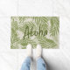 Papkolea Beach é uma das praias mais coloridas do Havaí, localizada no sudeste da Ilha Grande. A areia é verde como resultado da olivina mineral do cone de cintura vulcânica. Nós criamos esta design a da inspiração das cores desta praia e adicionamos palmeiras que ventilam as brisas acima. As cores são tonalidades de palmeiras e naturais arenosos. Nosso tapete de chão diz "Aloha" acolhendo seus convidados para sua bela casa de praia!