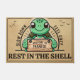 Pegue um pedaço de paraíso na sua porta! Esta porta encantadora apresenta uma tartaruga alegre segurando um cartaz de madeira rústico com as palavras "Bem-vindo ao Paraíso". Abaixo está a adição espirituosa "Descanse na Shell", convidando seus convidados a permanecerem com um piscar os olhos. Acima da tartaruga está um arco elegante e simples, acompanhado de duas mensagens inspiradoras: "Slow Down" à esquerda e "Sentir Cozy" à direita. O sol brilha no topo esquerdo, enquanto os pássaros adornam o céu no topo direito - uma perfeita interação de serenidade e idila natural. O design captiva com tons verdes naturais para a tartaruga e um fundo cor de areia quente. Esta porta humorística e convidativa traz encanto e relaxamento à sua entrada. É ideal como um presente engraçado para amigos, família ou anfitriões ou como uma adorável decoração para a sua própria casa. Perfeito para quem aprecia humor e conforto!