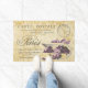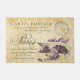 Vintage O cartão postal francês apresenta uma bela tipografia, "Paris" e um cheio de caixa roxo, desossado, de flores lilás, sobre o fundo antigo de papel de parede em apuros
