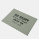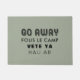 Anti esteira bem-vinda engraçada. Fundo feito sob encomenda da cor. Adicione facilmente o texto adicional se desejado. Diga vão afastado em quatro línguas diferentes - Fous le Acampamento (francês), Vete Ya (espanhol), Hau Ab (alemão).