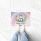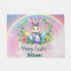 Bem-vindo Coelhinho da Páscoa com ovos coloridos de flores e porta arco-íris