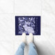 Meu design original, de cerâmica de coelho azul e branco, é uma decoração clássica para um bonito tapete de boas vindas. "Bem-vindos" é impresso verticalmente próximo ao trabalho de arte de um coelho fofo e aves em um jardim estilizado cheio de videiras e flores inspiradas pelos antigos motivos Delft, Dedham e da loteria chinesa asiática. Whimsical, original, trabalho de arte e design único por Tuzi Williams.