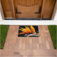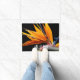 Para Islanders! Porta decorativa de 18" x 24", que dá as boas vindas aos visitantes com a palavra ALOHA e mostra a foto de um florescimento laranja da ave tropical da Fábrica de Paraíso, também conhecida como Flor de Crane, e impressa em fundo preto. Um design floral adorável! Utilizar no interior ou em áreas de acesso cobertas.
