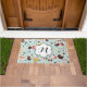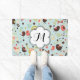 Nossos Felizes Pássaros nos Campos das Flores, design, são tão bonito, divertidos, caprichosos e coloridos que você certamente se apaixona por isso! Um giro pássaros brancos, flores e corações design em verde, creme, coral, chocolate marrom e azul, este divertido, colorido tapete de porta branca apresenta uma faixa em forma de flor branca que você pode facilmente personalizar com sua inicial de monograma!