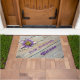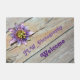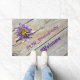 Um solteiro Passiflora ou Passion Flower floresce sobre o fundo de madeira com penas é uma bela mistura de charme exótico tropical e rústico nesta porta acolhida. A flor púrpura repousa sobre conselhos de madeira que têm um tom natural de madeira e um aspecto de cinza de prata. Personalize com o nome para uma recepção verdadeiramente exclusiva. Esta imagem é uma fotografia floral original de JLW_PHOTOGRAPHY
