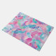 Whimsical blend of soft pastel colors and flowing abstract ribbon shapes.