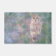 Uma pintura a óleo enchanting na imagem pastel do estilo de uma coruja barrada que senta-se em um ramo de árvore. Whoo este não seria um presente perfeito para??