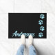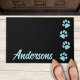 Bem-vindos convidados para sua casa com estas elegantes estampas azul turquesa azul-brilhante e estampadas e monogramas personalizados doormatas e decoração doméstica Este design de impressão azul e preto é uma tendência, elegante e favorita. Um deve ter para cada mãe de gato ou cão, e amante de animais, gatos e cachorros. Maravilhoso presente personalizado de Natal ou aniversário. COPYRIGHT © 2020 Judy Burrows, Black Dog Art - Todos os direitos reservados