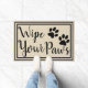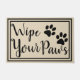 Porta-documentos amigável para animais de companhia, com silhuetas de impressão de pata preta e a frase "Limpe suas patas" sobre o taupe com uma dupla borda preta.