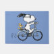 Pedal into classic charm and fun with this adorable blue floor mat, featuring Snoopy and Woodstock on a bicycle! This vibrant mat showcases a delightful line-art illustration of Snoopy, wearing sunglasses, happily riding a vintage-style blue bicycle with Woodstock perched safely behind him. The dashed lines behind the back wheel suggest motion, adding to the playful scene, all set against a cheerful light blue background. This versatile mat is perfect for adding a nostalgic and inviting touch to any room, entryway, or even a child's play area. This iconic and heartwarming design is a must-have for any Peanuts fan looking to brighten their home!