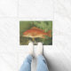 É fácil personalizar este tapete de boas-vindas com o seu texto personalizado! Vintage ilustration Marine life design com um peixe-gato vermelho no oceano rodeado por coral prestes a tirar o isco da linha de um pescador. Red Snapper do Game Fishes dos Estados Unidos, uma pintura de S.A. Kilbourne, 1878.
