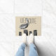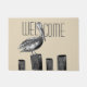 Cumprimente seus convidados com esta esteira de porta bonita que caracteriza uma ilustração esboçado preto e branco do pelicano e um fundo colorido costume!