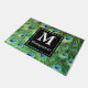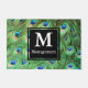 O pavão corajoso, vibrante, e moderno empluma-se nas matiz da cerceta, do azul, do bronze, e do verde com um quadrado preto decorativo e sua escolha da letra do monograma e do nome de família brancos do cheio.