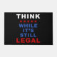 Uma curiosa citação política anti-palavras, "Pense, enquanto ainda é Legal". Ideal para conservadores e todos os pensadores livres.