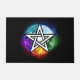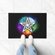 Pentagrama luminoso desenhado artificialmente com cinco elementos mágicos, água, terra, fogo, astral, ar sobre fundo negro. Pentagrama Wiccan. Wicca