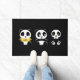Dois pequenos pandas sentados no escuro com um pequeno esqueleto. Um Panda está vestindo uma camiseta amarela com a palavra "meh" nela.