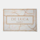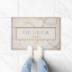 Personalized faux white marble doormat featuring warm gold lettering, a crisp double border frame, and your custom family name centered for an elegant, polished entryway look. The bright marble style feels modern and quietly luxe, pairing beautifully with neutral porches, black hardware, brass accents, and clean front door styling. A thoughtful choice for housewarmings, newlyweds, realtor closing gifts, apartments, condos, and Airbnb hosts who want a welcoming first impression.