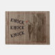 Uma porta de boas-vindas russa impressa com uma floresta pileada de pica-pau batendo buracos em um tronco de árvore. O presente perfeito para observadores de pássaros em todo lugar.