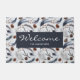 Bem-vinda à porta com um belo padrão. Pinhas, penas, agulhas de pinho e bagas. Design de aquarela russa.