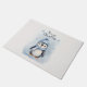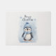 Uma ilustração encantadora de inverno de um adorável pinguim vestindo um chapéu e cachecol listrados, trazendo uma vibração acolhedora e festiva. Os flocos de neve suaves e tons azuis suaves no fundo criam uma atmosfera mágica de inverno. Perfeito para cartões de Natal, posters, adesivos e artesanatos sazonais!