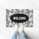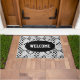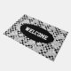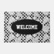 Legal tapete de boas-vindas preto e branco impresso com fatias e ervas de pizza puxadas à mão. Porta perfeita para restaurantes italianos, pizzarias, trattorias e casas de pizzarias