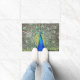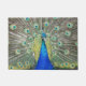 Porta decorativa que mostra a foto de uma linda, azul Pavão com uma plumagem colorida de penas de rabo-de-fanato. Utilizar no interior ou em áreas de acesso cobertas. Você pode personalizar a porta para adicionar texto personalizado, se desejar.