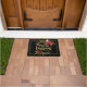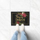 Cumprimente seus convidados certo na porta com esta esteira de porta floral festiva da poinsétia. Feliz Natal Dourado em uma grinalda. Personalize-a com nome de família.