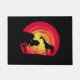 Ilustração do pôr do sol africano com sol vermelho, girafa e decoração da silhueta de árvore em fundo preto. É possível mudar a cor de fundo e adicionar uma diferente à design com sua escolha.