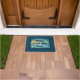 Por favor, limpe seus pés à porta legal tênis azul. Fundo de cor azul ou personalizado. Design do tapete desportivo com tênis, vassoura e bolas. Excelente para casa, clube, tribunais e muito mais.