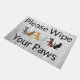 Por favor, limpe suas patas, não é uma casa, é um sentimento. Ajude a criar a sensação perfeita antes de entrar na porta com uma porta personalizada. Borracha sem escorregamento que não racha nem fivela, este tapete resiste a desaparecer, molde e mofo e pode ser facilmente limpo com uma mangueira. Este belo tapete de chão é uma excelente adição a qualquer casa. ・Dimensão: 18" (largura) x 24" (comprimento). ・A impressão de sublimação de alta qualidade permite cores ricas em cheio que não desaparecerão. ・O tapete é liso de 1/8" com borda branca. ・O respaldo por ação de látex resistente permite uma aderência sem deslizamento. ・Aprovado para áreas interiores e exteriores cobertas. ・Decorado nos EUA.