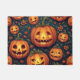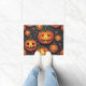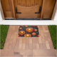 Esta é uma porta para decoração de Halloween. Mude a atmosfera com um tapete de abóbora.